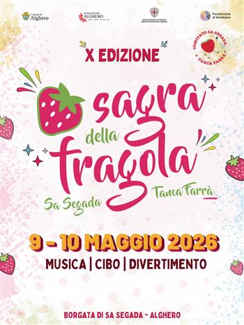La campagna algherese si prepara a celebrare per la decima volta il suo frutto simbolo. Nei giorni del nove e del dieci maggio, la borgata agricola di Sa Segada-Tanca Farrà, insediamento rurale incastonato nella piana della Nurra, ospiterà la decima edizione della Sagra della Fragola.