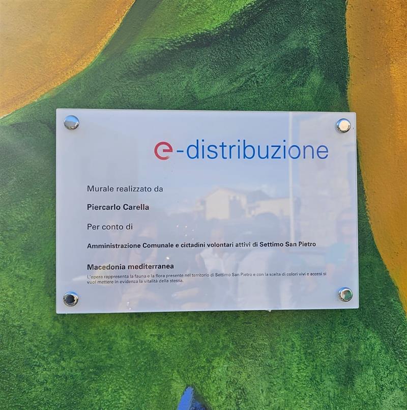 Settimo San Pietro (CA), 21 ottobre 2025 - Il Comune di Settimo San Pietro, con dei cittadini volontari attivi, e E–Distribuzione hanno inaugurato l’opera di street art realizzata dall’artista settimese Piercarlo Carella. L’opera “Macedonia mediterranea” rappresenta la fauna e la flora presente nel territorio di Settimo San Pietro e la scelta di colori vivi e accesi mette in evidenza la vitalità del territorio e della comunità.