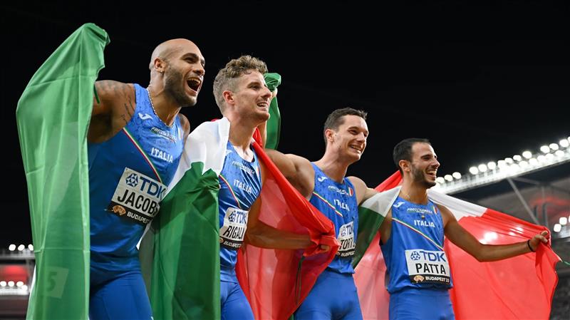 Dopo quarant'anni l'Italia torna vicecampione mondiale nella 4x100 maschile. Merito del quartetto formato Roberto Rigali, Marcell Jacobs, Lorenzo Patta e Filippo Tortu che ha conquistato la medaglia d'argento a Budapest, chiudendo la gara in 37''62 alle spalle degli Stati Uniti, trascinate da un meraviglioso Noah Lyles, alla terza medaglia d'oro in Ungheria. Gli azzurri hanno condotto un'ottima gara sin dallo start, riuscendo a battere avversarie altrettanto quotate come Giamaica e Gran Bretagna. Un ritorno in grande stile per l'Italia due anni dopo l'oro olimpico a Tokyo. Per l'Italia si tratta della terza medaglia di sempre ai Mondiali di atletica nella 4x100 maschile. La prima risale esattamente a 40 anni fa, nella prima edizione svolta a Helsinki nel 1983. Quella volta Stefano Tilli, Carlo Simionato, Pierfrancesco Pavoni e Pietro Mennea conquistarono l'argento alle spalle degli Stati Uniti, che vinsero con l'allora record del mondo in 37''86. La seconda medaglia azzurra nella staffetta, invece, è datata agosto 1995 a Goteborg, con il bronzo di Giovanni Puggioni, Ezio Madonia, Angelo Cipolloni e Sandro Floris. Dopo gli uomini ecco che sono scese sulla pista le ragazze. Si è concluso con un ottimo quarto posto il Mondiale della 4x100 femminile italiana. Dopo lo straordinario record nazionale nelle batterie (42''14), Zaynab Dosso, Dalia Kaddari, Anna Bongiorni e Alessia Pavese hanno chiuso la gara ai piedi del podio in 42''49. Medaglia d'oro agli Stati Uniti di Sha'Carri Richardson (con il record dei campionati in 41''03), davanti a Giamaica e Gran Bretagna. Per le ragazze è un risultato storico, il miglior piazzamento di sempre della 4x100 femminile azzurra nella storia dei Mondiali. Soddisfatte le ragazze per il risultato raggiunto, come spiegato da Anna Bongiorni: "Essere quarte al mondo è incredibile.-ammette-Le tre nazioni sul podio hanno almeno un fuoriclasse in squadra. Il nostro quartetto ha funzionato, anche se individualmente possiamo crescere. Vogliamo lottare anche l'anno prossimo per qualcosa di grande". Le fa eco Dalia Kaddari: "Se ce l'avessero detto l'anno scorso non ci avremmo creduto, dobbiamo essere fiere di questo risultato".